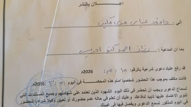 بسم الله الرَّحْمَنِ الرَّحِيم السلطة القضائية الجهاز القضائي ولاية الجزيرة محكمة القاضي المقيم الباقير اعلان بالنشر الى : داؤود عباس…