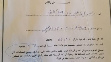 بسم الله الرَّحْمَنِ الرَّحِيم السلطة القضائية الجهاز القضائي ولاية الجزيرة محكمة القاضي المقيم الباقير اعلان بالنشر الى : ياسر ابراهيم…