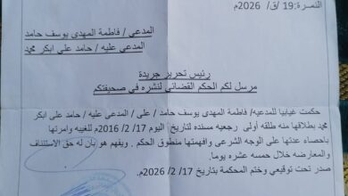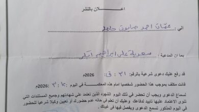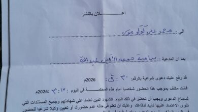 بسم الله الرحمن الرحيم السلطة القضائية الجهاز القضائي لولاية الجزيرة محكمة القاضي المقيم الكاملين العمرة : ق م/٢٠٢٦/٦٤م التاريخ :…