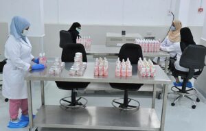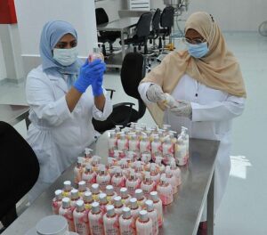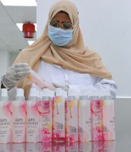 من جهتها،أبانت مشرفة خط الإنتاج بالمصنع عيشة الزهراني أن إنتاج المصنع السنوي يقدر بنحو 100 ألف وحدة من منتجات العناية بالجسم،وهي عبارة عن 6 منتجات رئيسية، كاللوشن، وكريم الجسم، وكريم اليدين، وغسول اليدين، وجلّ الاستحمام، ومعطر الجسم، يُنتج منها 2000 عبوة لكل نوع في اليوم الواحد.