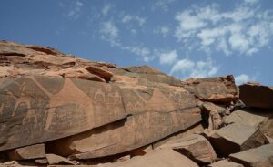ويشتمل الموقع الذي كان عبارة عن بحيرة قديمة على مرتفعات من الحجر الرملي تضم واجهاتها وواجهات الأحجار المتساقطة حولها الكثير من اللوحات الفنية الرائعة التي نفذها فنان ذلك العصر بدقة متناهية وبأسلوب غاية في الروعة والإتقان.