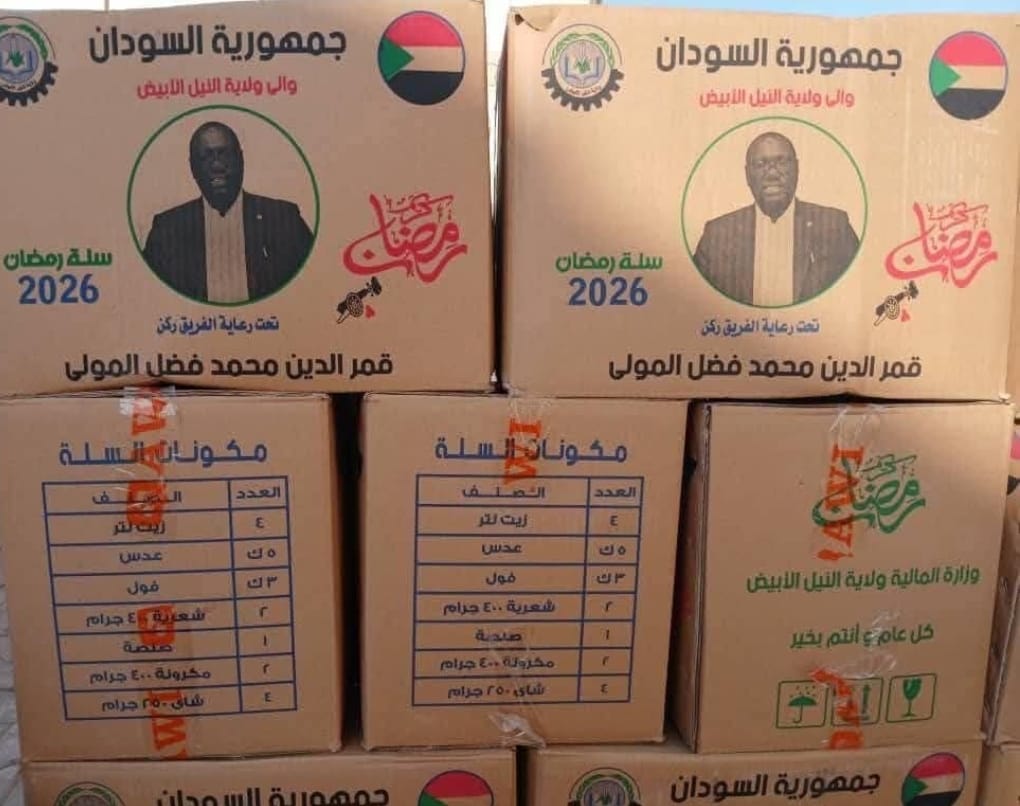 (كرتونة) تتوهطها على جنباتيها صورة السيد والي ولاية النيل الأبيض الفريق الركن قمر الدين محمد فضل المولي