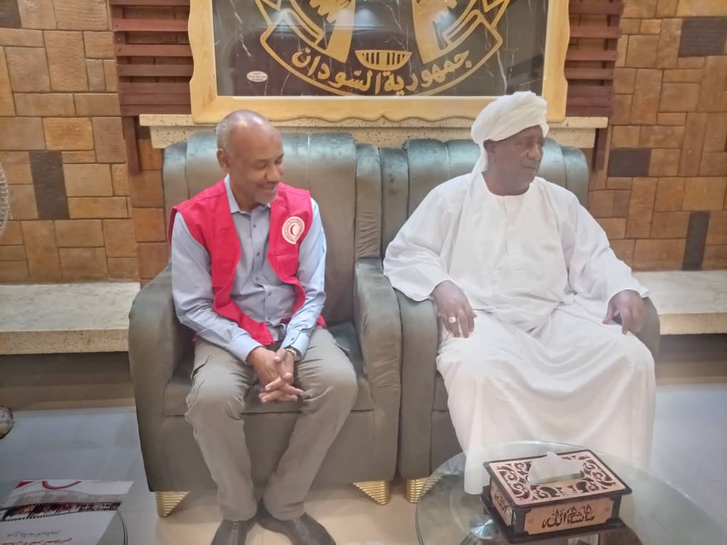 السيد/ والى الولاية رحب بزيارة الامين العام للولاية مؤكدا رضائه التام عن عمل الجمعية بالولاية فقد ذكر للوفد الزائر بان الهلال الأحمر واقف مع حكومة الولاية فى تقديم الخدمات الانسانية لانسان الولاية قبل واثناء وبعد الحرب واعدا بالوقوف مع الجمعية لاداء رسالتها الانسانية تجاه كافة شرائح المجتمع .