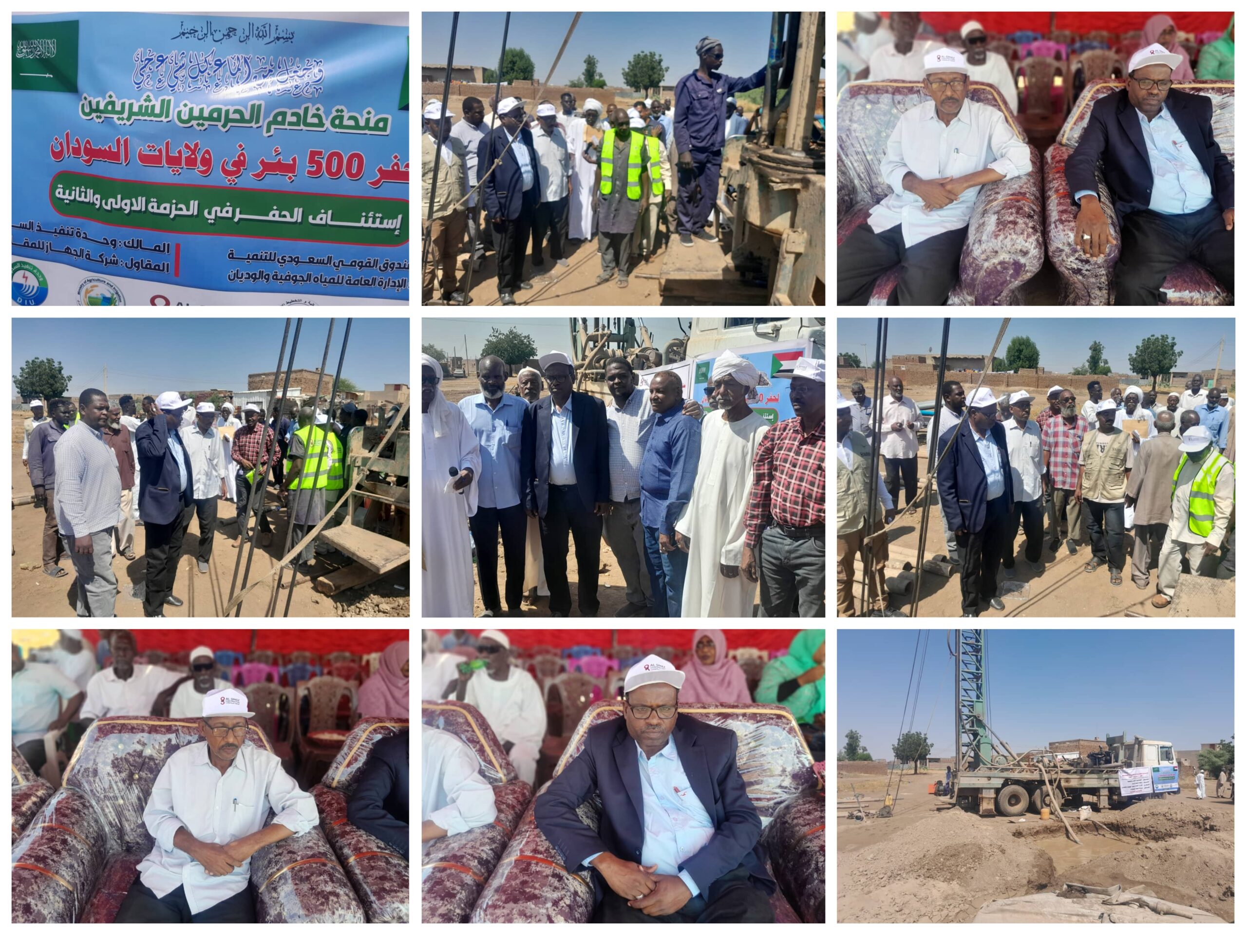 دشن المهندس بدر الدين عبدالله عبد الوهاب مدير هيئة مياة ولاية الجزيرة وممثل وزير التخطيط العمرانى اليوم بمنطقة بركات النموذجية استئناف مشروع منحة خادم الحرمين الشريفين لحفر ٥٠٠ بئر لمحطات المياة بالسودان المرحة الثانية.