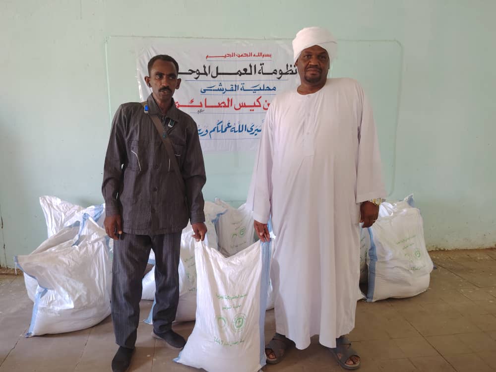 في مبادرة طيبه و مشهد إنساني مشرق يجسد قيم التكافل و التواصل المجتمعي وتعزيز قيم المحبه بين أفراد المجتمع دشنت منظومة العمل الموحد بمحلية القرشي ظهر اليوم كيس الصائم والذي يأتي تحت شعار قال تعالى (وقل وأعملوا فسيري الله عملكم و رسوله و المؤمنون) صدق الله العظيم