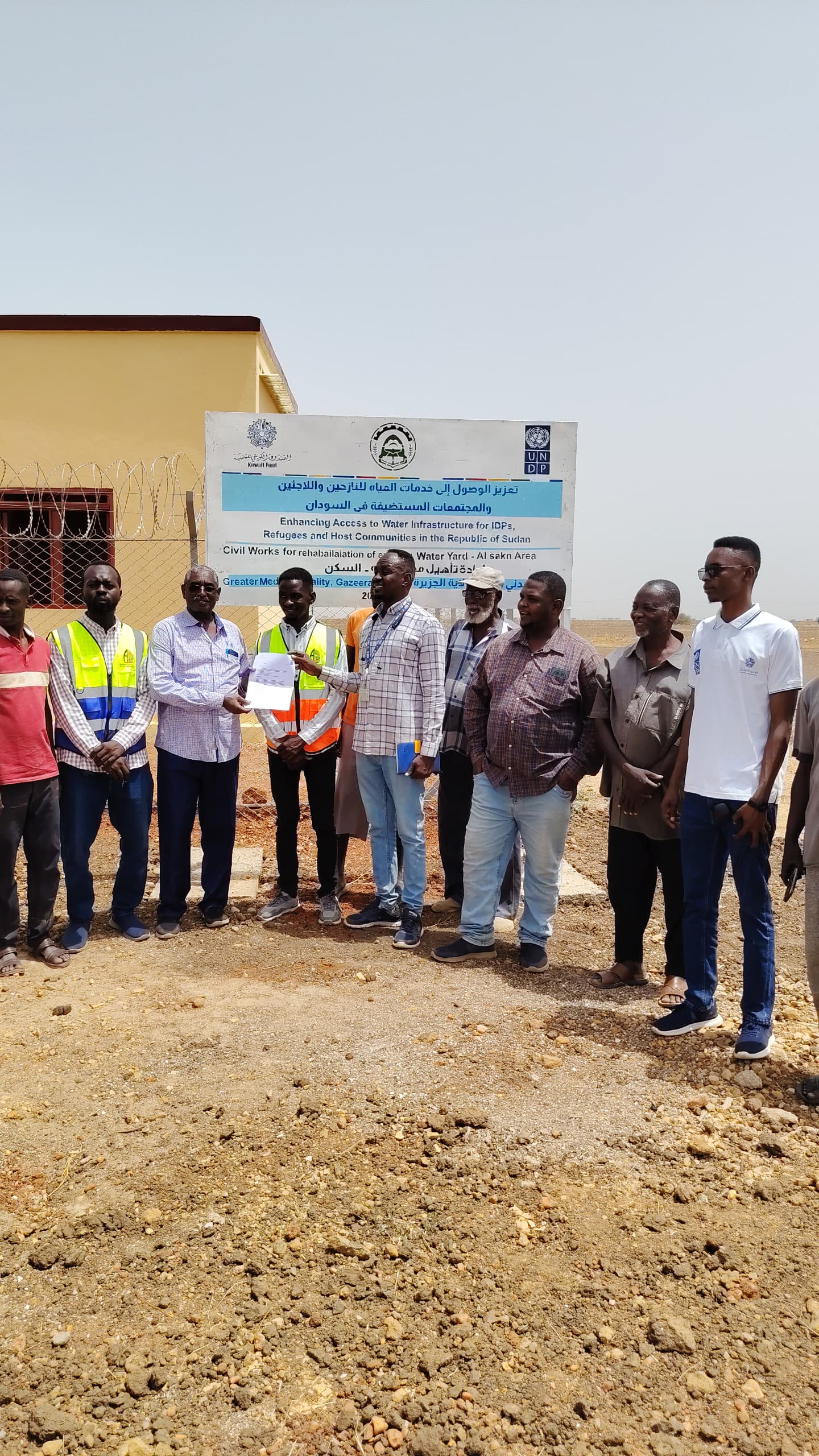 ويعود هذا الانجاز بفضل متابعه فريق العمل المتكامل بين مهندسي منظمة ال UNDP ومهندسي هيئة مياه ولاية الجزيرة والشركه المنفذه.