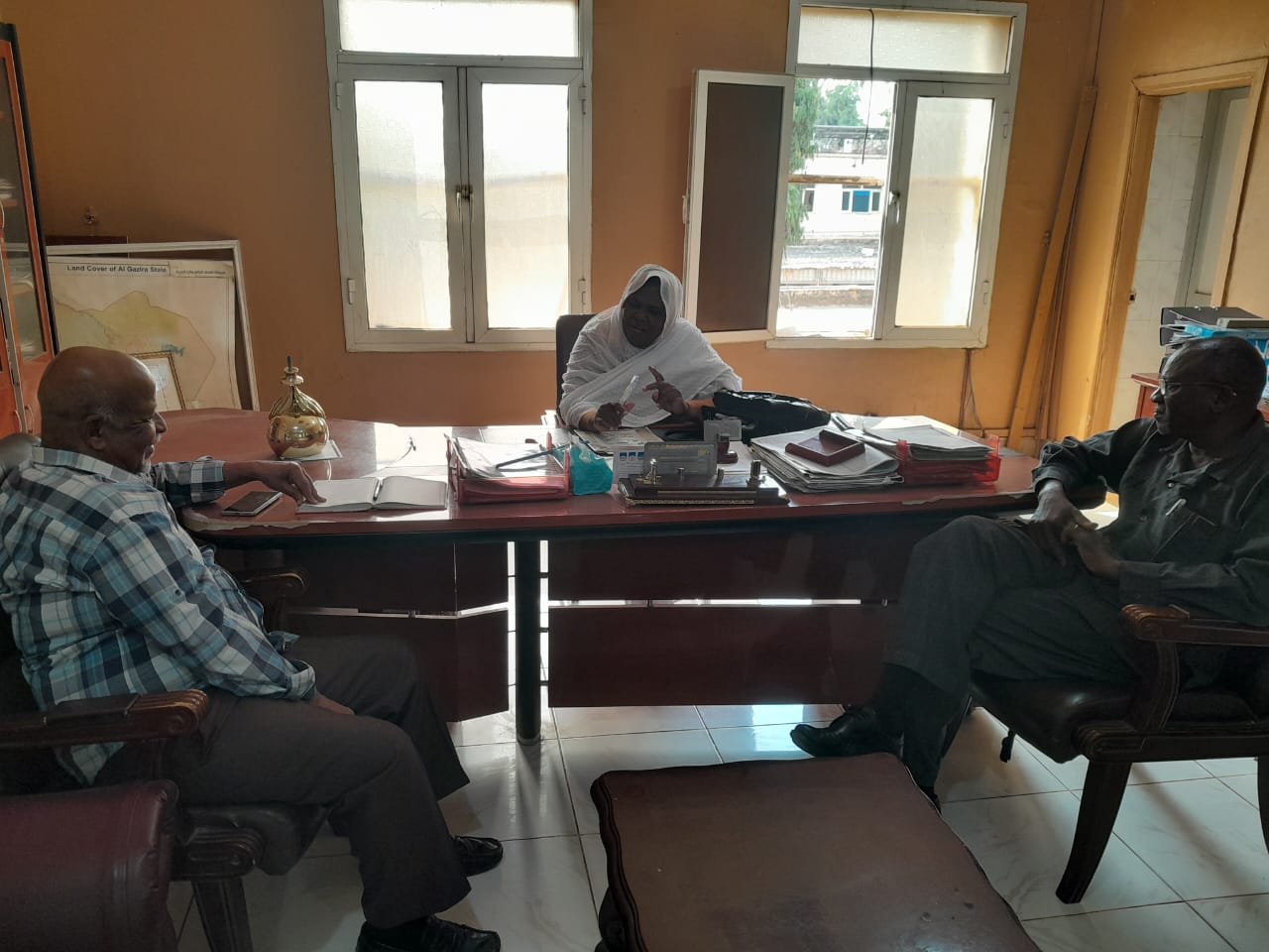 بحثت الدكتورة عرفة محمود احمد المدير العام لوزارة الانتاج والموارد الاقتصادية بولاية الجزيرة الوزير المفوض لدي لقائها بمكتبها صباح اليوم دكتور محمود حسين علي مستشار الامانة الفنية للامن الغذائي بكسلا والدكتور الفاضل احمد اسماعيل مستشار منظمة الفاو.