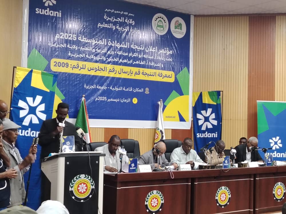 أعلنت حكومة ولاية الجزيرة عن نتيجة امتحانات الشهادة المتوسطة للعام 2025م بنسبة نجاح بلغت 87.4%، واحرزت 11 طالبة المرتبة الأولى بمجموع 279.5 واشاد والي الجزيرة الطاهر ابراهيم الخير بالدور الذي وصفه بالكبير الذي قامت به وزارة التربية والتعليم بالولاية في ظل ظروف استثنائية